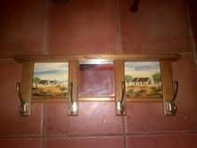 A coat holder, has one mirror in the centre and 2 tiles, on the one tile is written Bekker.  The condition is good.
