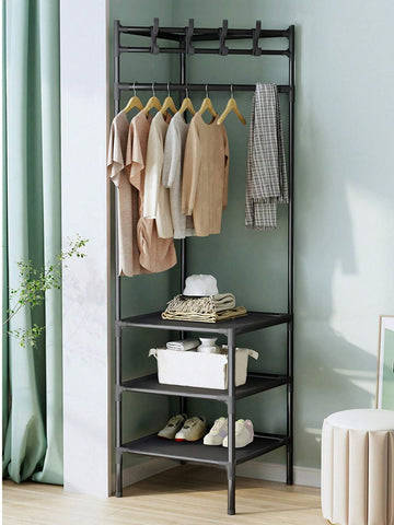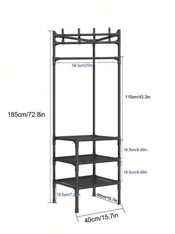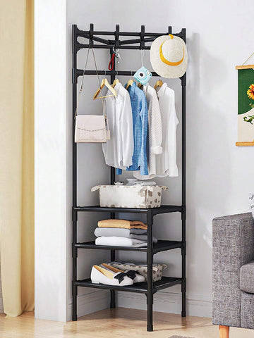 Coat Rack with Shelf Vintage Corner Hall Tree with 2 Shelves Entrance Coat Hanger with 1 Cross Bar E