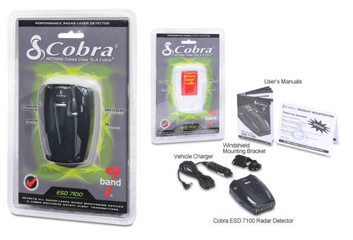 The Cobra ESD 7100 Radar Detector provides total protection and peace of mind. The Cobra ESD 7100 is a digital radar and laser detector. It can detect up to 9 different types of signals.