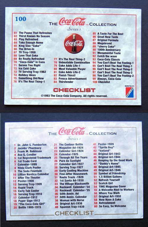 COCA COLA COKE HIGH QUALITY COLLECTORS TRADING CARDS FROM 1993 - SERIES 1 - FULL SET OF 100 CARDS