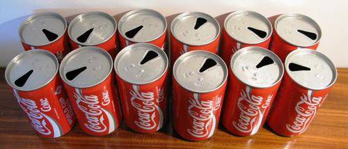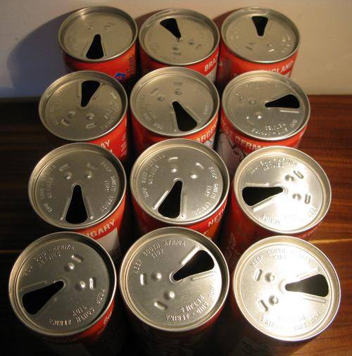 Cans are overall in very good condition, with occasional wear and some scratches. All cans are top-opened.