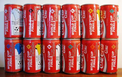 Complete Coca Cola 12 can set issued in South Africa for the 1990 Italian Soccer World Cup.