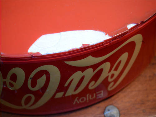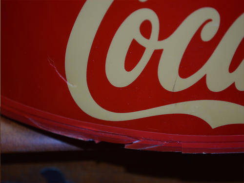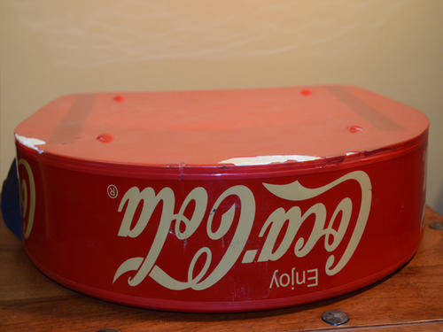 Quirky piece of coke memorabilia. Slight peeling on the underside which is not visible when item is lying flat. Made of plastic and foam insulation.
