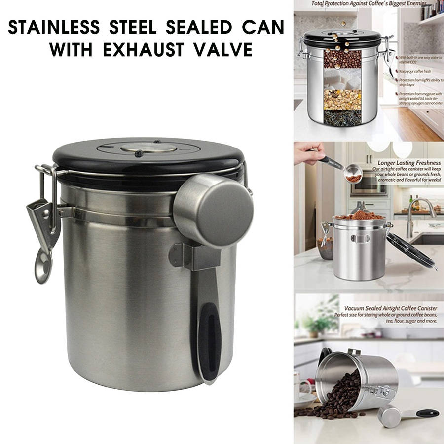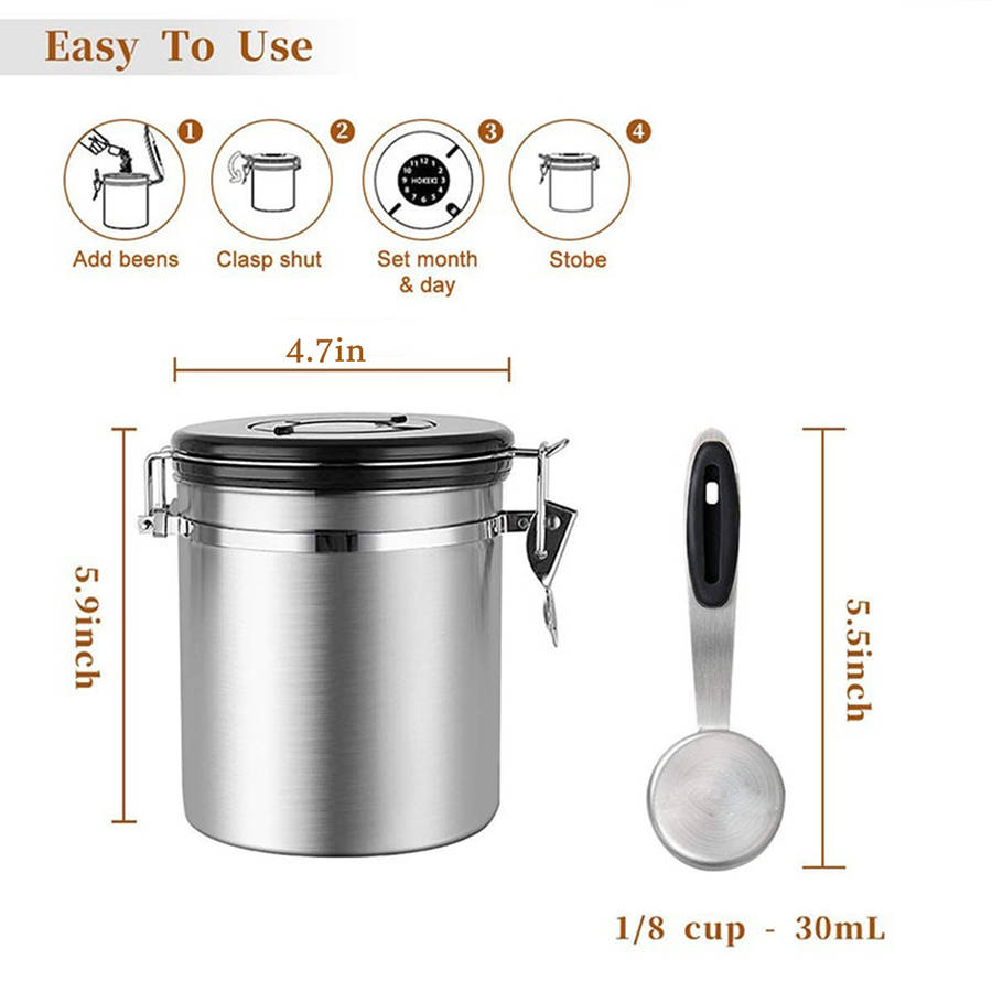 1 x Spoon Features: 1. Rust-Resistant Stainless Steel Container: Our airtight vacuum sealed coffee canister is carefully crafted with premium food grade stainless-steel metal.