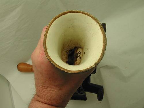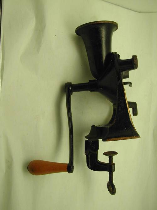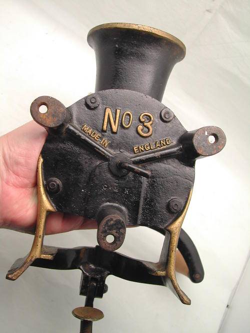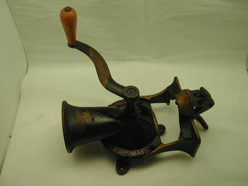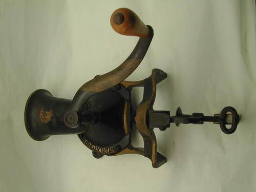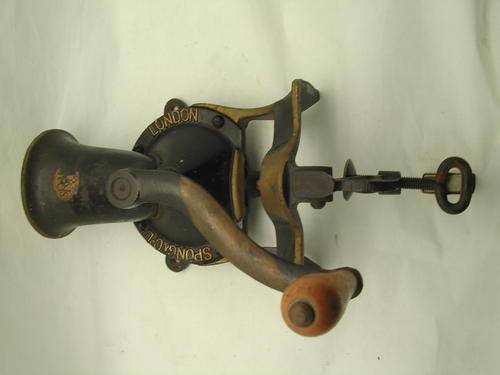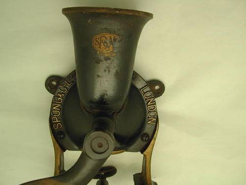 James Osborne Sponge established himself as an ironmonger in London, in 1856. I believe the company – Spong & Co - was in production until the early 1960’s. James Osborne Sponge, to this day, is renown for inventing time saving domestic appliances. He designed and patented this cast iron coffee grinder some hundred years ago. These were available in five graduating sizes, that were numbered 0 to 4. This grinder, No 3, comes in all original condition, with its original tin container still in place. This is a large, heavy old contraption, so please add R60 for postage.