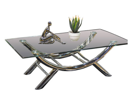 The modern and stylish Nabrasca Coffee Table will complement your home decor beautifully. This square table features a unique curved designed base in a chrome finish. The tabletop is crafted from sturdy 12mm tempered glass that is easy to clean.
