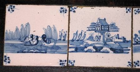 The tiles are antique Dutch Delft circa eighteenth century (1700--1799)! , the table is old, but modern in comparison. The wood has a warm, slightly worn patina. I would suggest having a piece of glass cut for the top.