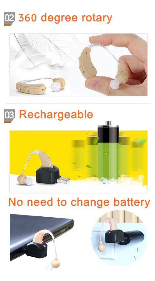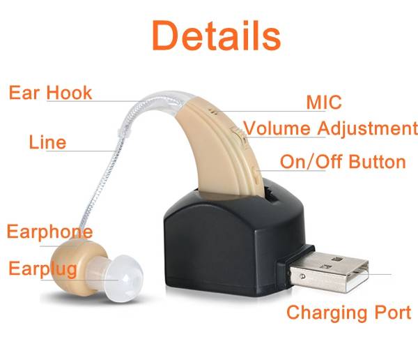 Features: 1.Micro BTE and air Construction design 2.Full digital circuitry 3.More natural, clear sound and great listening comfort 4.Gradually and comfortably increases sound levels according to your unique needs by digital volume control 5.Durable,long-lasting hearing instrument inside and out 6.Reduces unwanted background noise by adjusting focus using different channels 7.Invisible, charge by power supply or usb supply 8. 4 volume levels for you to adjust 9. With rechargeable function, no need to change battery 10. Charging Time: 4-8hours 11. This hearing aid is packaged in a nice retail box which is perfect for retailling