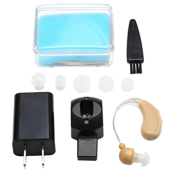 Package Included: 1 X Invisible Hearing Aid 5 X Eearplug(different size) 1 X USB Charger Stand 1 X US Charger 1 X Cleaning Brush