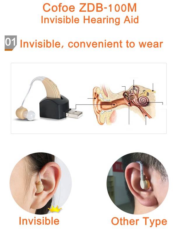 Cofoe ZDB-100M Invisible USB Rechargeable Deafness Hearing Aids Sound Amplifier Voice Enhancement