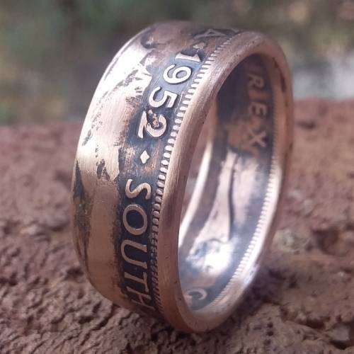 *** Your coin ring will be sized to your preferred specified size (ADDITIONAL CHARGE OF R100 PER RING ON CHECKOUT FOR SIZING AND POLISHING, THIS CHARGE IS EXTRA AND COMPULSORY ON ALL RINGS). Ladies ring sizes is from K to S and is crafted from the 1/2 penny coin, men's ring sizes is from T to Z+6 and is crafted from the 1 penny coin. SELECT SIZE WITH CHECKOUT***
