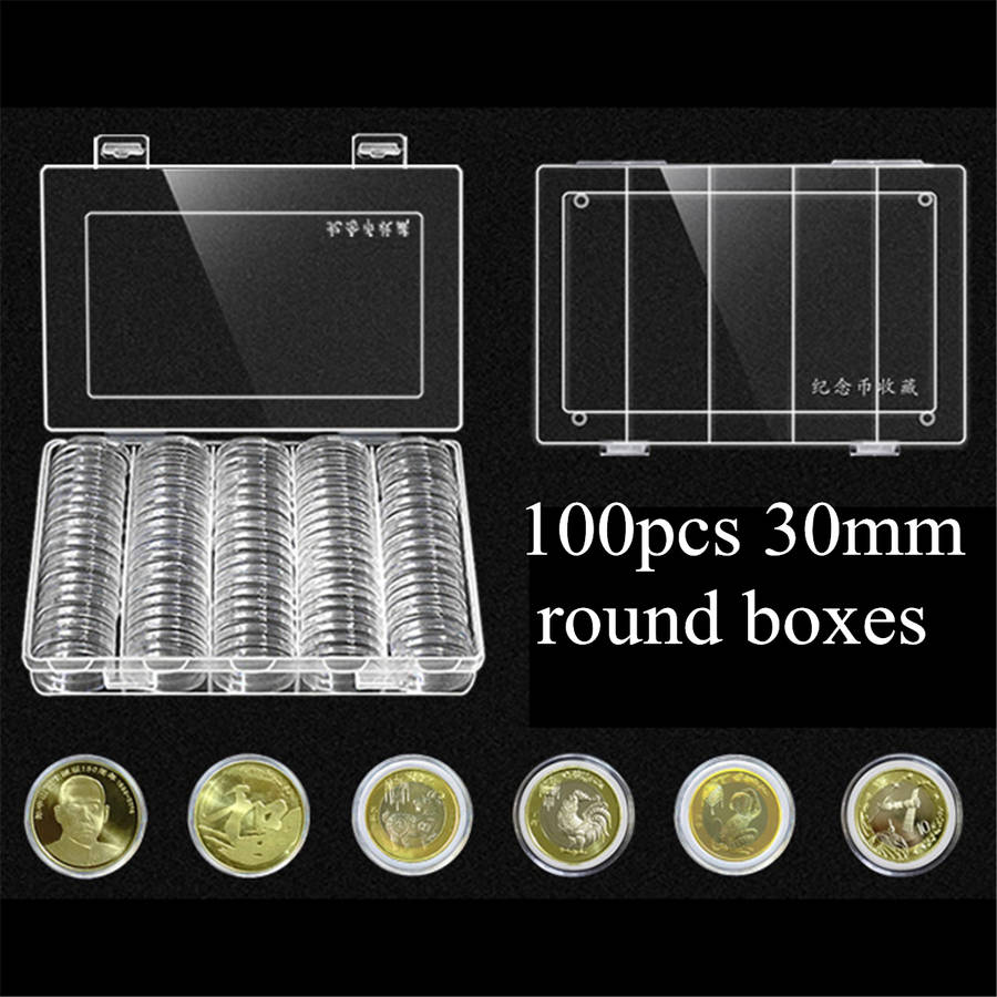 Coins Holder Storage Box Hold 100Pcs 30mm Round Coins Boxes Plastic Protector