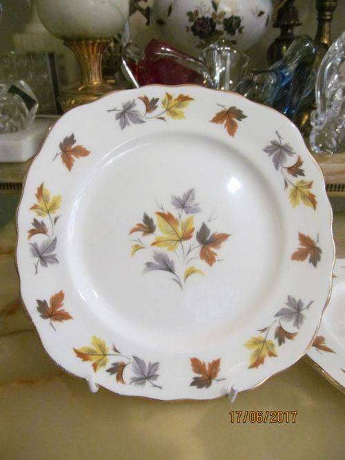 VINTAGE Approx 1962 PORCELAIN BY COLCLOUGH AVON - SAUCERS AND CAKE PLATES IN LEAF PATTERN CURRENTLY DISCONTINUED