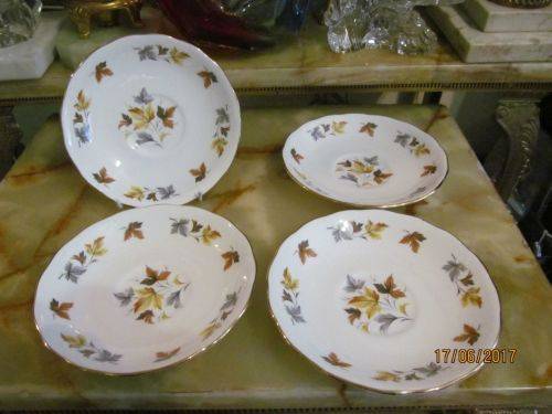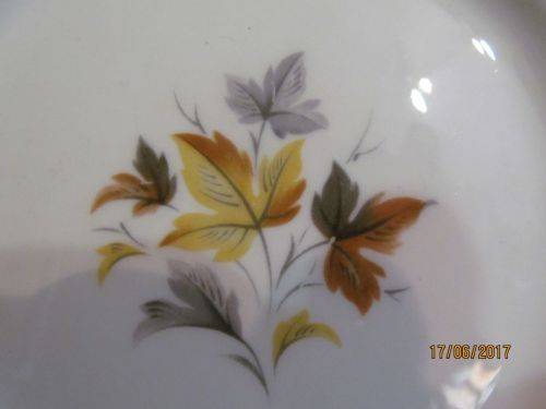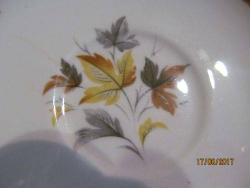 THIS LOT IS A PERFECT REPLACEMENT FOR YOUR PRECIOUS CLOCLOUGH AVON VINTAGE SET OR SIMPLY TO HAVE SPARE AROUND THE HOME . EACH OF THE SIX ITEMS IS DECORATED WITH AUTUMN LEAF DESIGNS IN YELLOW, PALE BROWN , LIGHT GREY AND WITH GOLD GILDING AS AN ADDITION