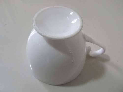 2)- AN UNMARKED WHITE TEACUP WITH SCROLL HANDLE AND PEDESTAL BASE. IN PERFECT CONDITION WITH NO CRAZING, CRACKS, CHIPS OR DAMAGES. 7cm HEIGHT.....4.8cm DIAMETER OF BASE.....8.4cm DIAMETER OF RIM