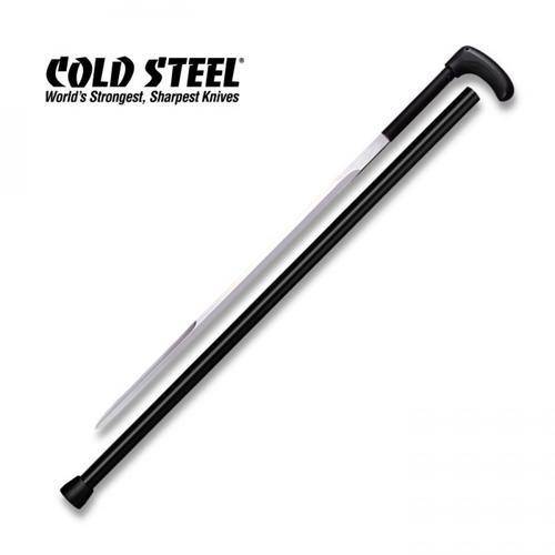 The concealed sword is easily released by a hard, quick tug on the handle to break the suction of its friction lock. It’s an extremely formidable sword too, made from 1055 Carbon steel, a little over 24” in length and 5.5mm thick. It’s sturdy enough for both cutting and thrusting, with one long cutting edge, a strong sharp point, and a fully sharpened back edge. It’s more than enough to take down any attacker, and the heavy aluminum shaft of your cane makes a fine weak hand parrying weapon and a frightfully effective bludgeon in its own right.