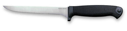 Our new series of kitchen knives, the Kitchen Classics, will race through just about any task you can imagine. These blades are ice tempered and then precision flat ground for maximum cutting power. All models in the series come with a razor sharp edge that lasts and lasts, and some have serrated edges uniquely appropriate to the tasks they were designed to do. The handles are, in a word, terrific! Carefully designed to ensure a strong, secure, yet comfortable grip, they feature a stiff Zytel core on the inside, with a softer, deeply checkered Kraton exterior for a the kind of non-slip grip that must be felt to be appreciated! The Kitchen Classics are available for purchase as single items or as a complete set. This is a single item.