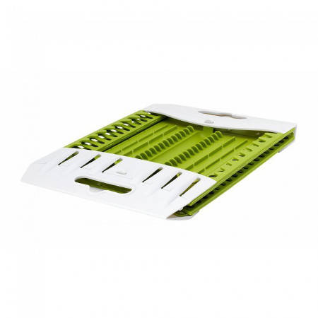 This large capacity collapsible dish rack will be sure to keep your kitchen neat and tidy without taking up too much precious space. This compact dish drainer can easily accommodate glasses and mugs as well as plates, bowls and cutlery. The built in drip tray allows easy removal of excess water and easy cleaning, simply tip to drain. And when you're finished just snap flat - making storage a breeze!