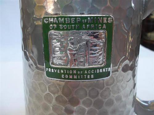 We have on offer this Beautiful Collectable Chamber of Mines South Africa Pewter Mug. Clear bottom.