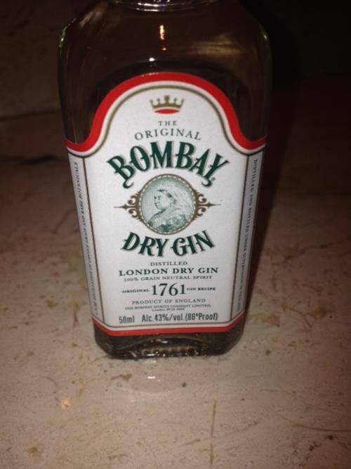 The miniature Bombay Dry Gin on the left is a more uncommon bottle.