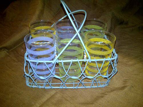 Basket 240mm x 200mm 6 compartments with set of 6 glasses .
