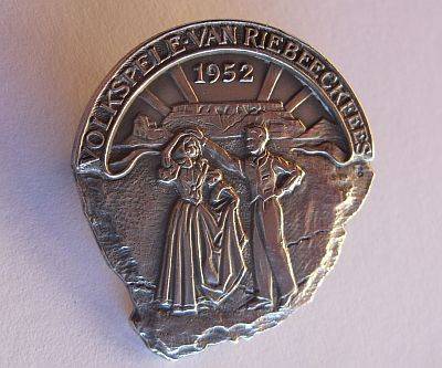 COLLECTABLE - STERLING SILVER BADGE - JAN VAN RIEBEECK FEES 1952