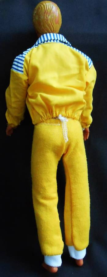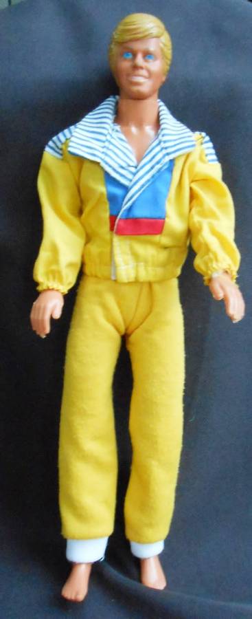 This Ken doll is in a good secondhand condition. It has some paint loss on the back of the head.This Ken was sold as "Island Fun" and the tracksuit is of the same age but not original to this doll. He has blonde molded hair and blue eyes. The head mold is 1983 and the body mold 1968.
