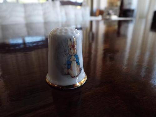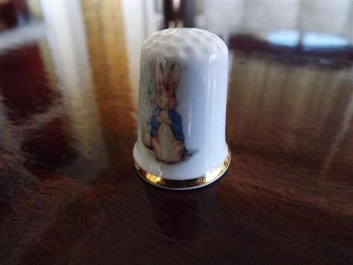 This auction is for a vintage & highly collectable bone china thimble made for Beatrix Potter with the well known Peter Rabbit on the front.