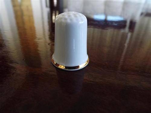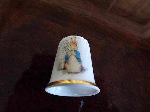 It has a cute Beatrix Potter Peter Rabbit on the front and a plain white back, all complemented by a gold gilt trim.Inside it has Fine Bone China - Made in England. This one thimble part of the 3 collectable series of Beatrix Potter I have on offer for auction. Kindly look at my other Beatrix Potter Thimbles.
