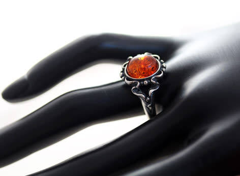 VINTAGE BALTIC AMBER STERLING SILVER RING. 925. DECORATIVE OPENWORK DESIGN