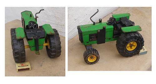 THIS AUTION IS FOR A GENUINE VINTAGE 1960/70'S TONKA TIN PLATE TRACTOR........IN PLAYED WITH CONDITION. WHEELS AND SEAT, STEERING, ENGINE AND GRILLE ARE PLASTIC. NUMBER 51001 SEEN UNDER THE FRONT AXLE SECTION. TONKA IN RAISED WORDING UNDERNEATH. TRACTOR IS FULLY INTACT WITH NO VISIBLE DAMAGES......SOME LIGHT SURFACE RUST IN PLACES. PAINT WORK SLIGHTLY DISTRESSED, BUT ACCEPTABLE. WHEELS STILL TURN ETC. MEASURES APPROXIMATELY 27 X 19 X 16 CM.