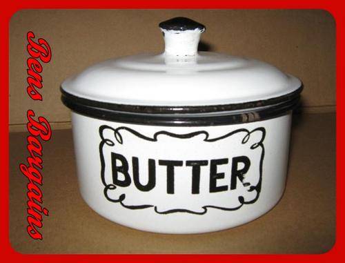 On offer is this White Old Enamel Butter Dish with Lid.