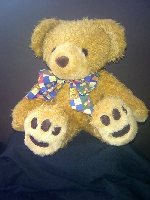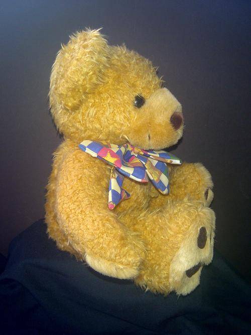 My name is "Joe Junior", I am about 25cm sitting down. I have lots of personality and would make a very special friend. I am still in very good condition. The name on my bodytag is "Gothik" and the papertag attached to it reads Heartfelt Collectibles with my name 'Joe Junior'.