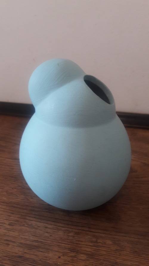 Offered for sale is a quirky and unusual ceramic vase designed by Marie Michielssen for the Dutch design/home-ware company Serax Maison D'Etre based in Antwerp . Michielssen is married to one of the founders on the company and is the resident in-house principal designer although the company also makes use of external talented designers from all over Europe. This is a slip cast earthenware item hand painted in an acrylic PVA. The striations of the brush marks are faintly visible on the form. The extraordinary shape comprises three conjoined round forms graduating in size with a large round aperture in the middle form. The shape suggests a comical humanoid form with a large round mouth. The vase is marked with a paper label . Serax is a very successful Dutch design homeware company similar to Ikea which designs and manufacturers stylish functional and unusual items for the home .