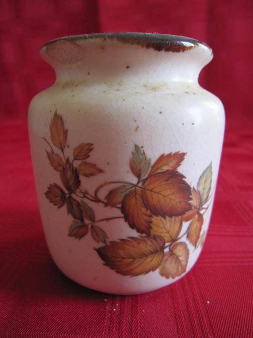 Items are in good condition, but does have some wear and tear. The vase with the autumn leaves on it does have a small chip on the rim.