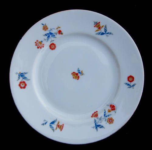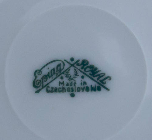 Plates are ultra thin and gold rimmed colour-decorated. All plates are individual and differ in pattern. Contains the hallmark EPING ROYALE. Made in Czechoslovakia.