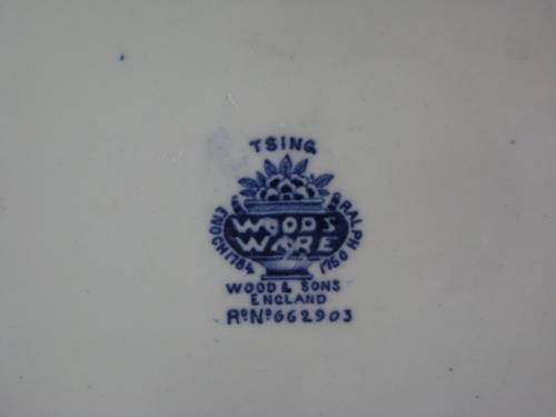 THE BLUE AND WHITE "TSING" WOODS WARE PLATE MEASURES 23 CM DIAMETER