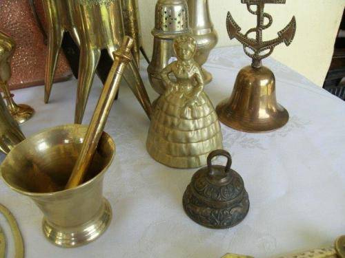 KINDLY NOTE POSTAGE IS R 150 to the door nice log of assorted brass items and one copper tray all items are as per pictures for one bid the lady bell has been repaired and got a small hole on it other items are in good used condition