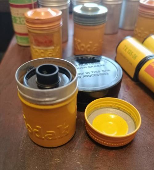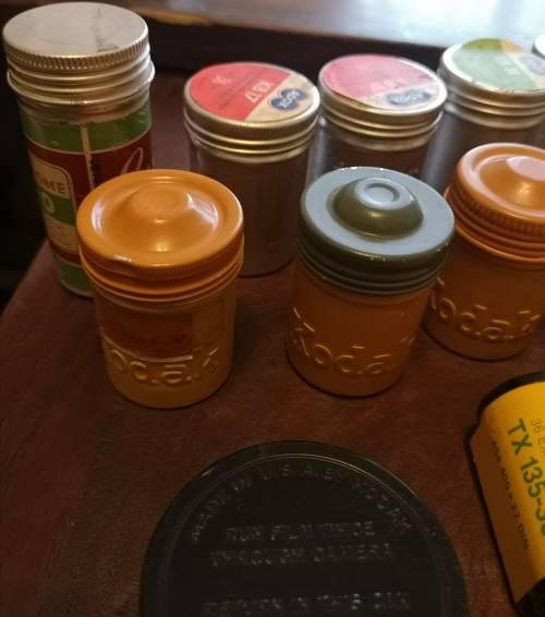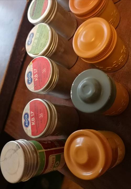 IN THIS LOT ARE SEVERAL DIFFERENT FILM HOLDERS, MADE OF ALUMINUM, AND A LOT OF VINTAGE FILM ROLLS.