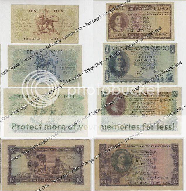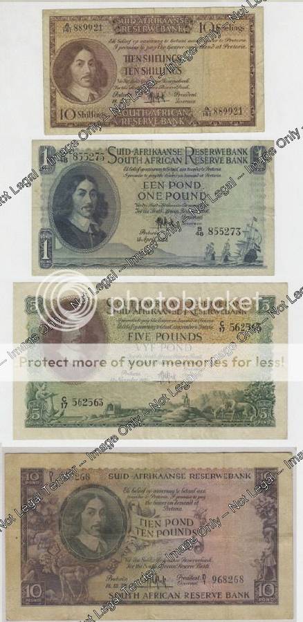 Collection of MH de Kock pre-decimal Notes : 5-Shillings, One Pound, Five Pounds and Ten Pounds