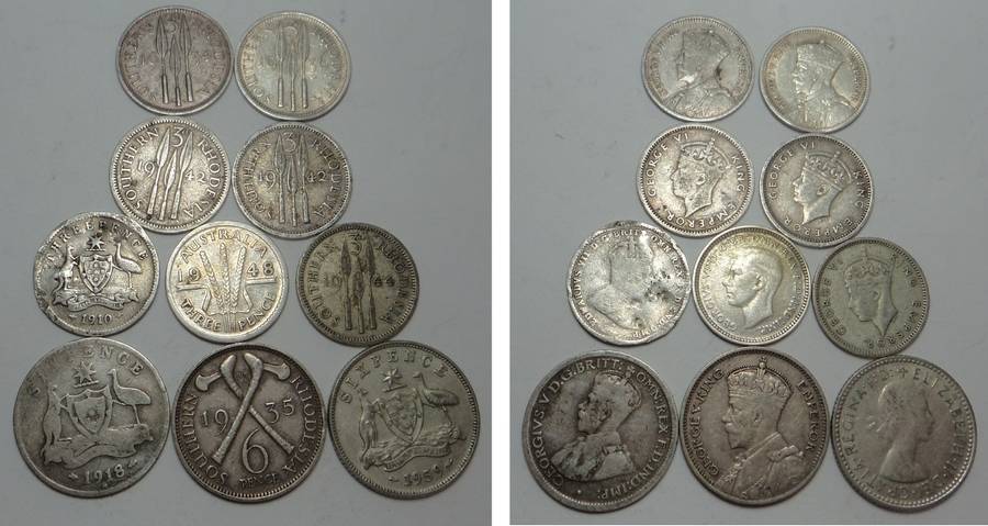 Australia: 3-Pence (1910 & 1948) 6 Pence (1918 & 1959).