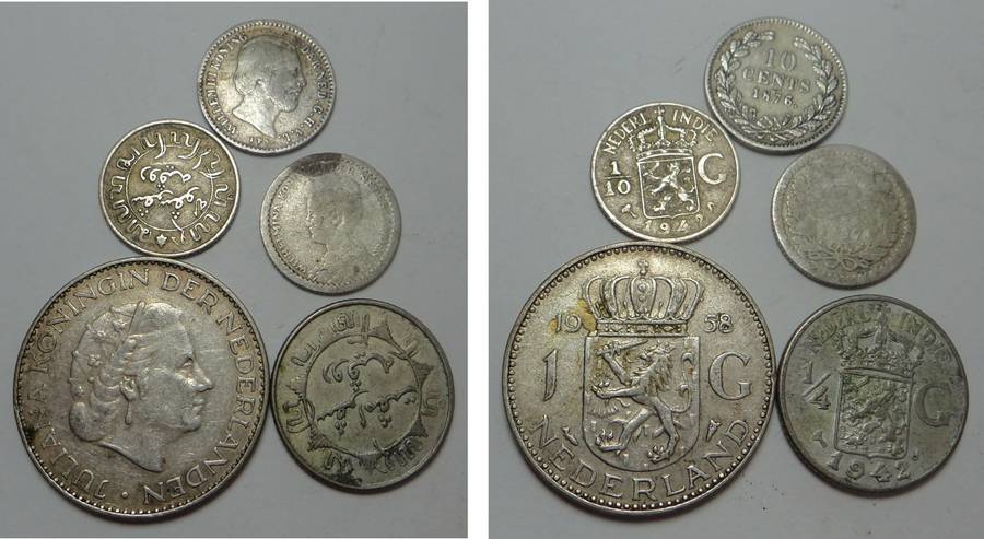 Netherlands 10c (1876 & 1917) and Gulden (1958).