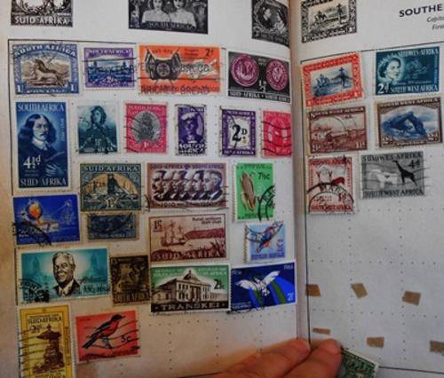 there are some old South African stamps from the Second World War and Earlier also African countries and Europe and Asia.The stamps are mostly before 1953, the stamps are not damaged they are put in with stamp holders