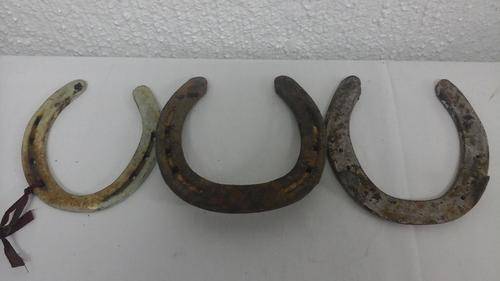 COLLECTION OF THREE ORIGINAL VINTAGE HORSE SHOES. SO AMAZING TO BE BELIEVE THEY WHERE ONCE ON A HORSE. THE RUST ADDS TO THE AUTHENTICITY.