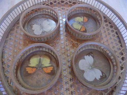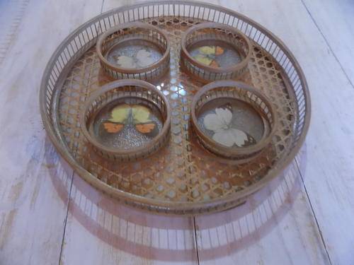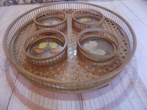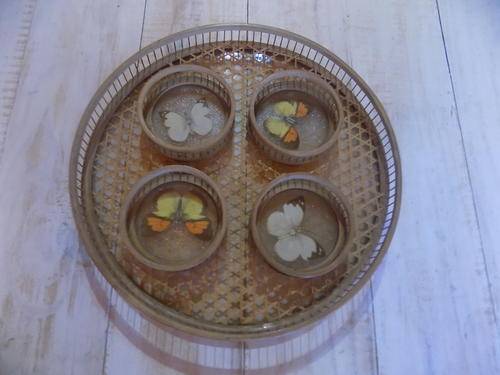Reed & Glass Tray with Butterfly Design Glass Holders