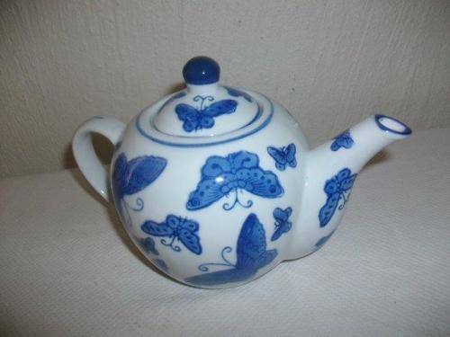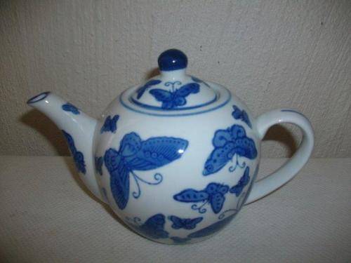 Lovely collectors Genuine ming blue butterfly pattern tea pot item there is a chip noted on the lid other wise still lovelyplease have a look at my other listings *free sprit*Thank you