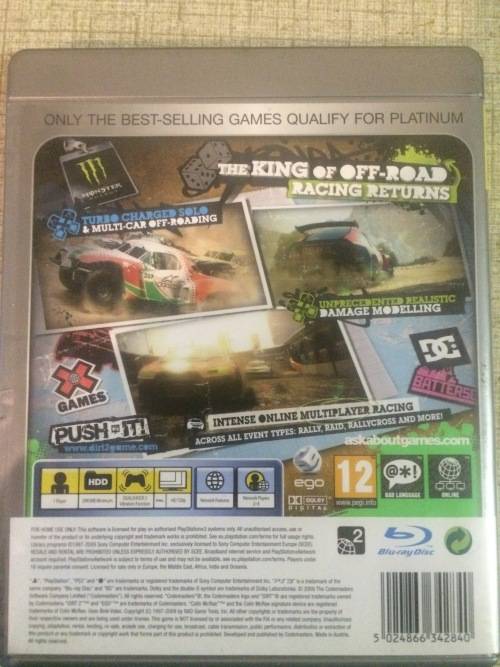 DiRT 2 takes racing games to a new level with thrilling new race types, striking locations, big event atmosphere, and a peerless line-up of super-charged speed machines, each selected to deliver spectacular, fast-paced racing. Taking players on an exhilarating World Tour, DiRT 2 delivers over 100 stunning events, including aggressive, multi-vehicle races and intense solo challenges, set in the most diverse and demanding real-world environments. From the muddy tracks of the Malaysian rainforest to spectator-packed stadiums in London and Los Angeles, racers compete in contemporary off-road race disciplines covering Rallycross, Trailblazer, Raid, Landrush, and Rally. Embracing the culture and new heroes of modern off-road racing, DiRT 2 features an exciting line-up of the best new rally drivers - including the multi medal-winning Subaru Rally Team USA driver Ken Block alongside Travis Pastrana, Dave Mirra, and Tanner Faust, who help players build their racing career. [Codemasters]