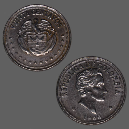 Colombia 20 Centavos 1966 Coin - Obverse REPUBLICA DE COLOMBIA - Reverse VEINTE CENTAVOS - Copper-Nickel