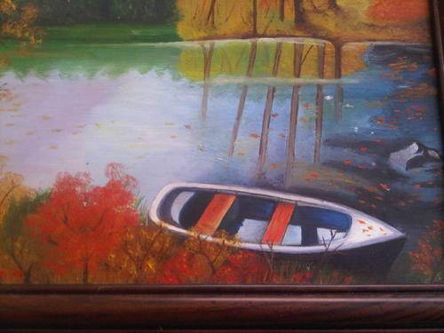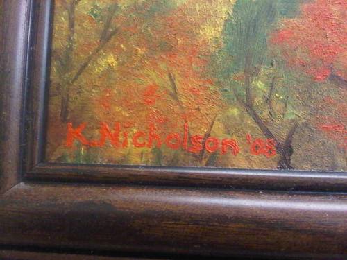 Colorful Lake Scene Painting.By Artist K. Nicholson