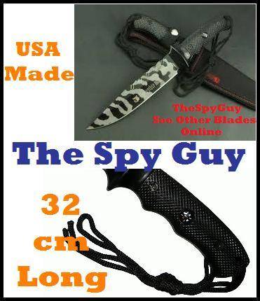 Featuring: A Full length of around 32cm blade 19.5cm, Full Tang solidly made with Fix Blade ideal for Hunting or Combat. USA Made Saber in Camo Print with Sheath